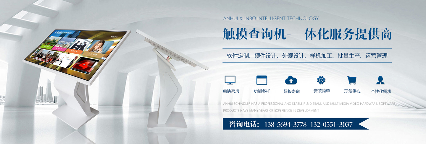 迅博智能 位于中國(guó)科教城---合肥市,和經(jīng)濟(jì)開(kāi)發(fā)區(qū)與高新區(qū)毗鄰,地址合肥市肥西縣湯口路與皋城路交口人民萬(wàn)福產(chǎn)業(yè)園一期12棟東側(cè),是一家IT領(lǐng)域的高新技術(shù)企業(yè),全心全意服務(wù)于信息化建設(shè),做專業(yè)的信息化提供商,全力打造信息時(shí)代新模式。 迅博智能 主要從事觸摸屏、觸摸顯示器、OLED柔性觸摸屏、觸摸查詢一體機(jī)系列產(chǎn)品及觸摸顯示互動(dòng)體驗(yàn)軟硬件產(chǎn)品;智能排隊(duì)叫號(hào)、網(wǎng)上預(yù)約排隊(duì)叫號(hào)、安康碼皖事通取號(hào)系統(tǒng);曲面屏、OLED 屏幕、柔性屏、LCD液晶大屏拼接系統(tǒng);落地式、壁掛式單機(jī)版網(wǎng)絡(luò)版室內(nèi)外廣告機(jī)及數(shù)字標(biāo)牌廣告信息發(fā)布系統(tǒng);室內(nèi)外LED電子格柵透明屏、單雙色、全彩電子大屏;各類辦事?tīng)I(yíng)業(yè)廳:公積金...